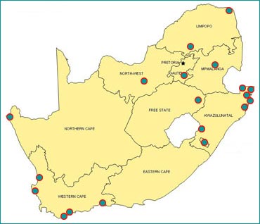Orange River Mouth; Northern Cape; 2,000 ha. 28 June 1991. Added to the Montreux Record, 26 September 1995. |